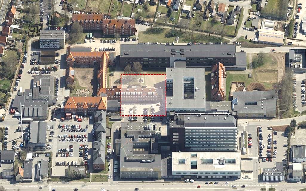 - Bygningen opføres på grunden, hvor den gamle børneafdeling var placeret. Den blev revet ned i 2023.